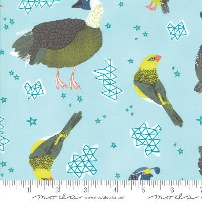 Oregon Birds featured on a light blue background. Coordinating fabric for the Pacific Wanderings panel